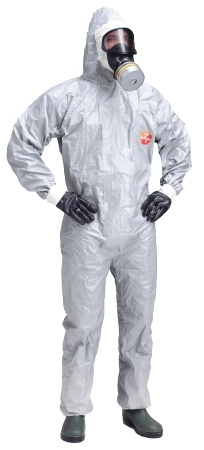 TYCHEM F Coverall with hood is an excellent barrier against a broad range of organic chemicals, highly concentrated inorganic chemicals and biological hazards. The protective suite has an antistatic treatment inside.