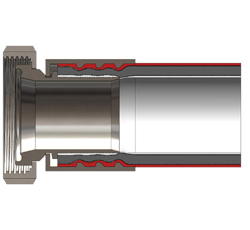 The profiles of the hose pillars and press sleeve must be compatible in order to obtain a correct compression. The crimp sleeve is slightly longer than the hose barb, so that the inner wall of the hose is pushed around it. This creates a functional smooth transition. Only a well-matched mix of parts will prevent the accumulation of debris.